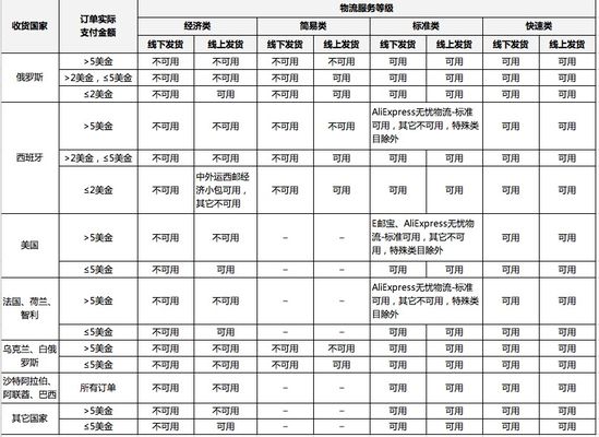 为更好的增加买家购物体验,速卖通平台从2016年开始要求卖家根据订单金额选择不同物流方案进行发货。比如:俄罗斯、西班牙0-2美金订单可使用经济类及以上物流方案,2-5美金订单不能使用经济类物流,需要使用无忧简易及以上物流方案,其它国家0-5美金订单可使用经济类物流方案等,具体可参照历史公告(最新物流规则公告)。
