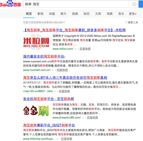 在张毅的提醒下,第一财经记者用“刷单”、“QQ群”等关键词在百度上搜索发现,刷单中介俯拾即是。