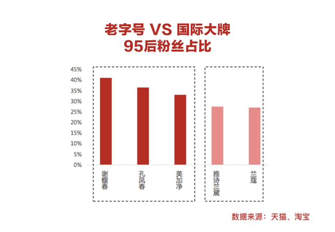 图说:谢馥春、孔凤春等老字号95后粉丝占比赶超国际大牌,在天猫赢得新生代消费者的认同。
