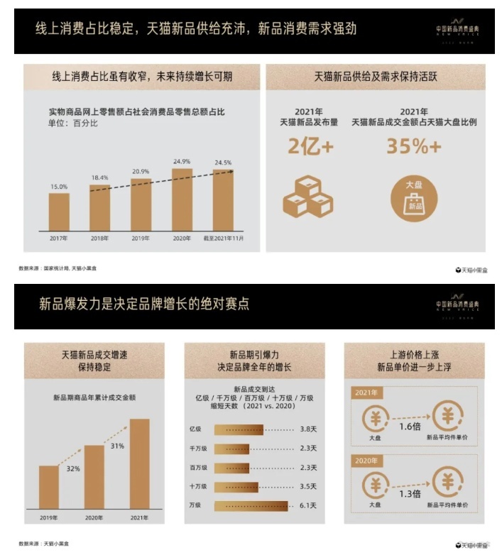 值得一提的是,此前,天猫小黑盒在第四届中国新品消费盛典上发布《2021线上新品消费趋势报告》,总览2021年新品消费市场现状和消费者的行为变迁,围绕新品消费场景、消费决策因素及品牌与消费者的关系变化做出趋势解读。