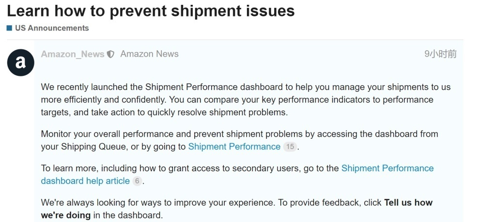 对此,亚马逊也在后台的问题指导中表示,此次推出货件绩效仪表盘,是为了帮助卖家更高效地管理货件,避免出现例如贴标和预处理错误、数量差异和安全问题等货件问题。