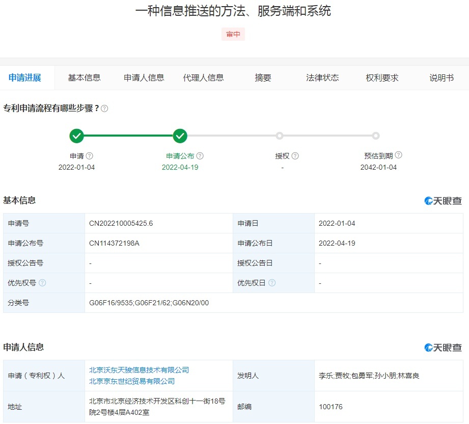 京东公开“信息推送的方法、服务端和系统”专利
