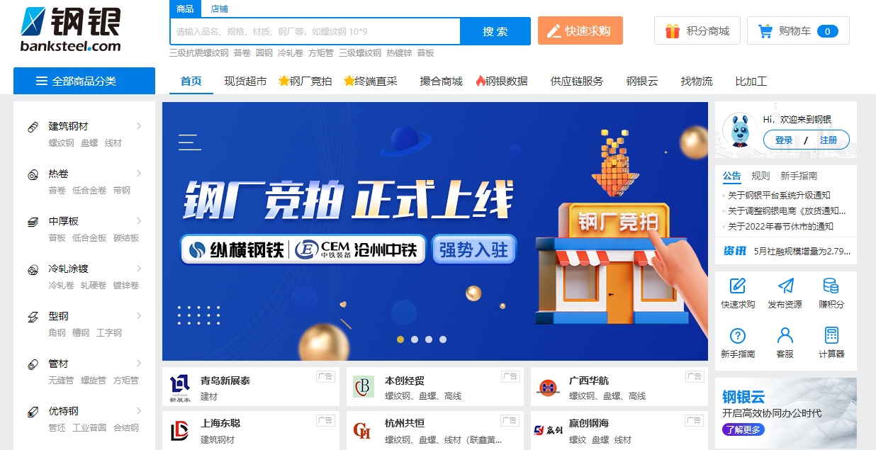 6月10日消息,据“钢银电商”公众号消息,近日,钢银科技成功中标山西建投物资贸易有限公司定制项目,大型国企X电商平台强力合作正式达成。
