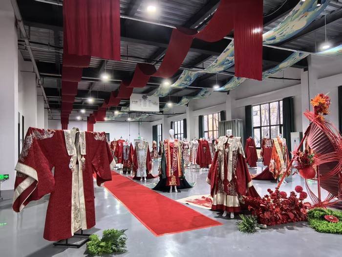 曹县电商的另一张王牌——汉服产业,同样给参访团带来深刻震撼。e裳小镇作为曹县推动电商产业规模化、规范化、园区化发展的重点载体,涵盖总部经济、物流服务、人才培育、汉服文化街区、生活服务等多功能板块,可容纳企业3000家。其中,曹县数字经济产业园作为二期核心项目,总投资10.3亿元,建筑面积16万平方米,设有电商产品展示展销区、直播电商与跨境电商服务区、行业协会与电商孵化区、研发设计中心等,构建了完整的电商产业服务生态。