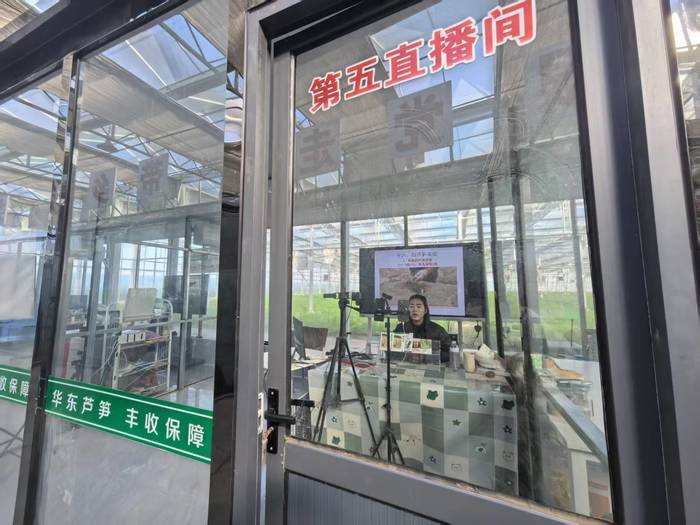 11月19日,参访团来到曹县华东芦笋科技服务有限公司。在成片翠绿的芦笋苗旁,架设直播设备的田间地头成为最生动的课堂,展现了“直播带货+现代农业”的深度融合。
