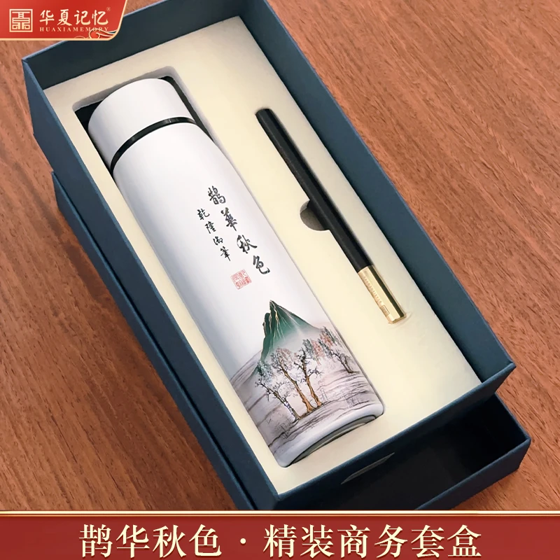 济南当地特色文创伴手礼鹊华秋色保温杯签字笔商务礼品套装可定制