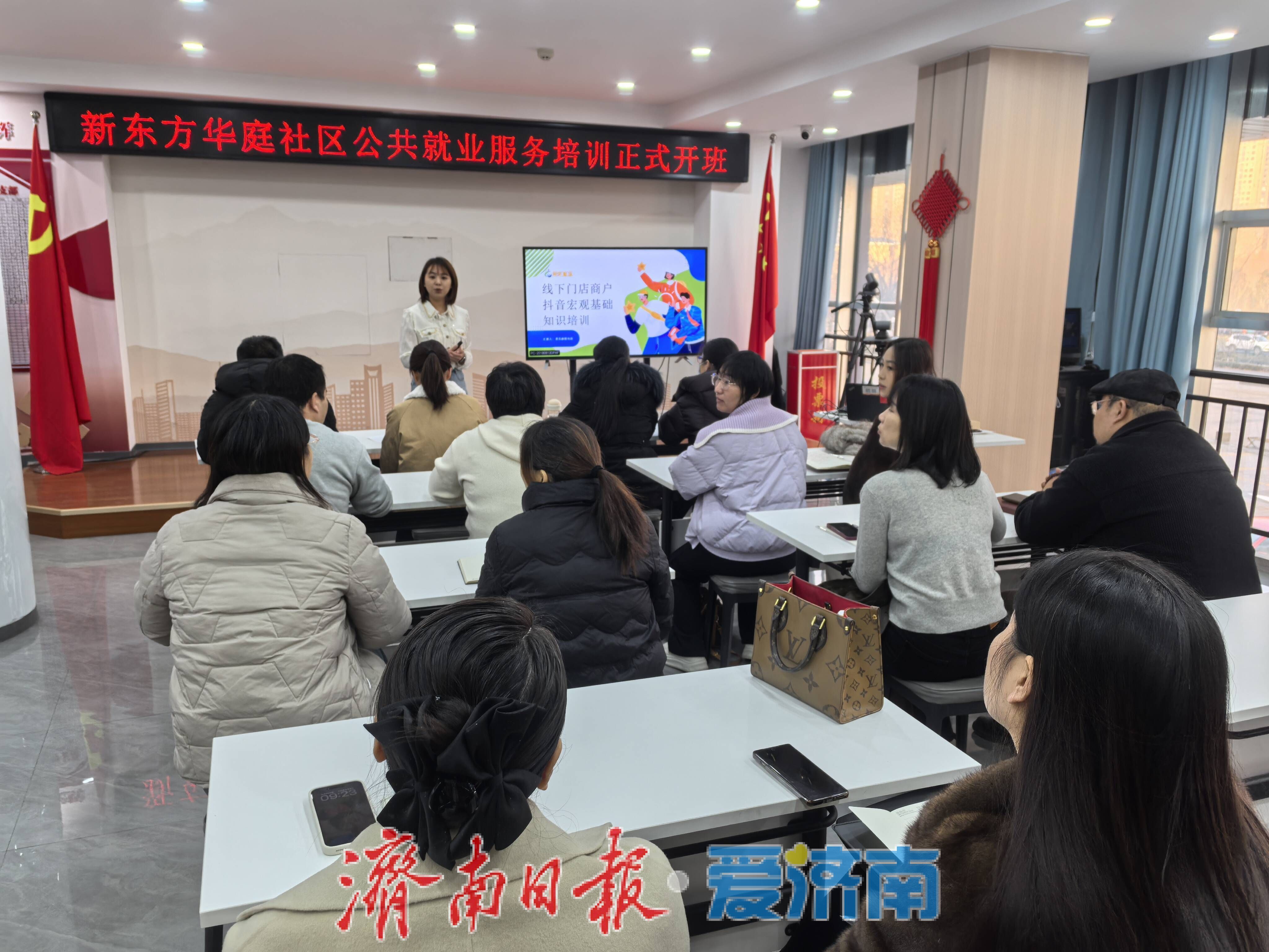 近日,由新东方华庭社区联合莱芜融媒文化发展有限公司打造的抖音直播电商培训班圆满落幕。本次培训自2025年12月29日启动,至2026年1月16日完成理论与实战全阶段课程,并于1月28日对优秀学员进行表扬,为整个培训项目画上圆满句号。