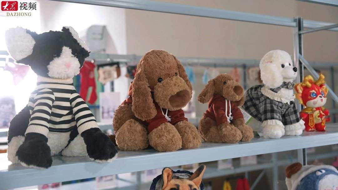 在曹县安蔡楼镇宠物服饰生产车间里,记者看到工人们正忙碌地裁剪、缝纫,一派热火朝天的景象。货架上,各式各样的宠物外套整齐排列,每一件都设计精巧、各具特色。