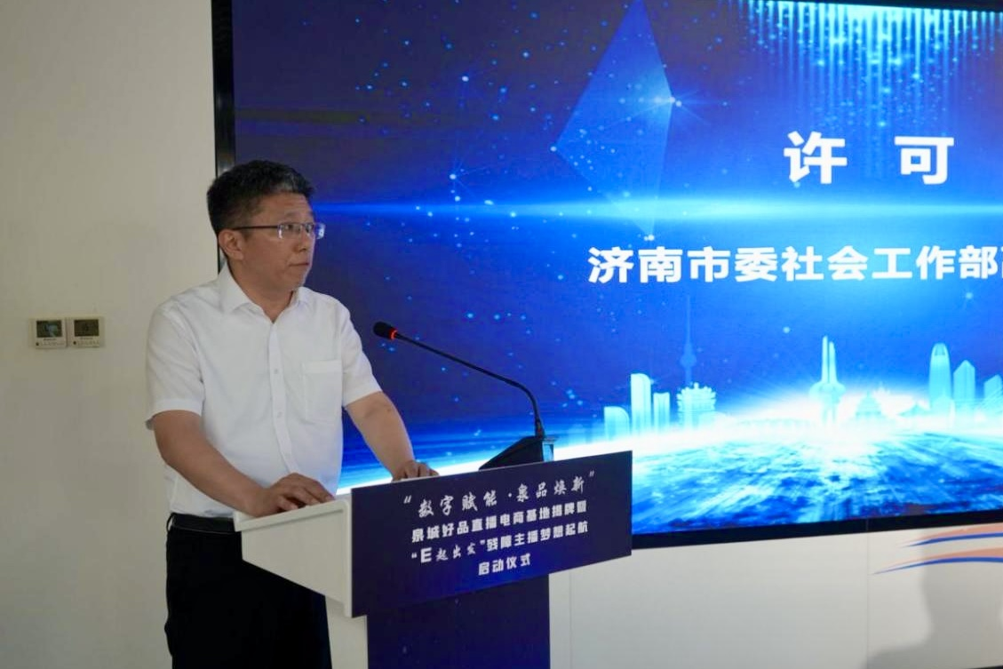 济南市委社会工作部副部长许可在致辞中表示,泉城好品直播电商基地的揭牌标志着济南直播电商产业迈入新阶段,希望基地成为数字经济发展先锋队、新就业群体温馨港湾与党建引领示范标杆,助力数字经济高质量发展。