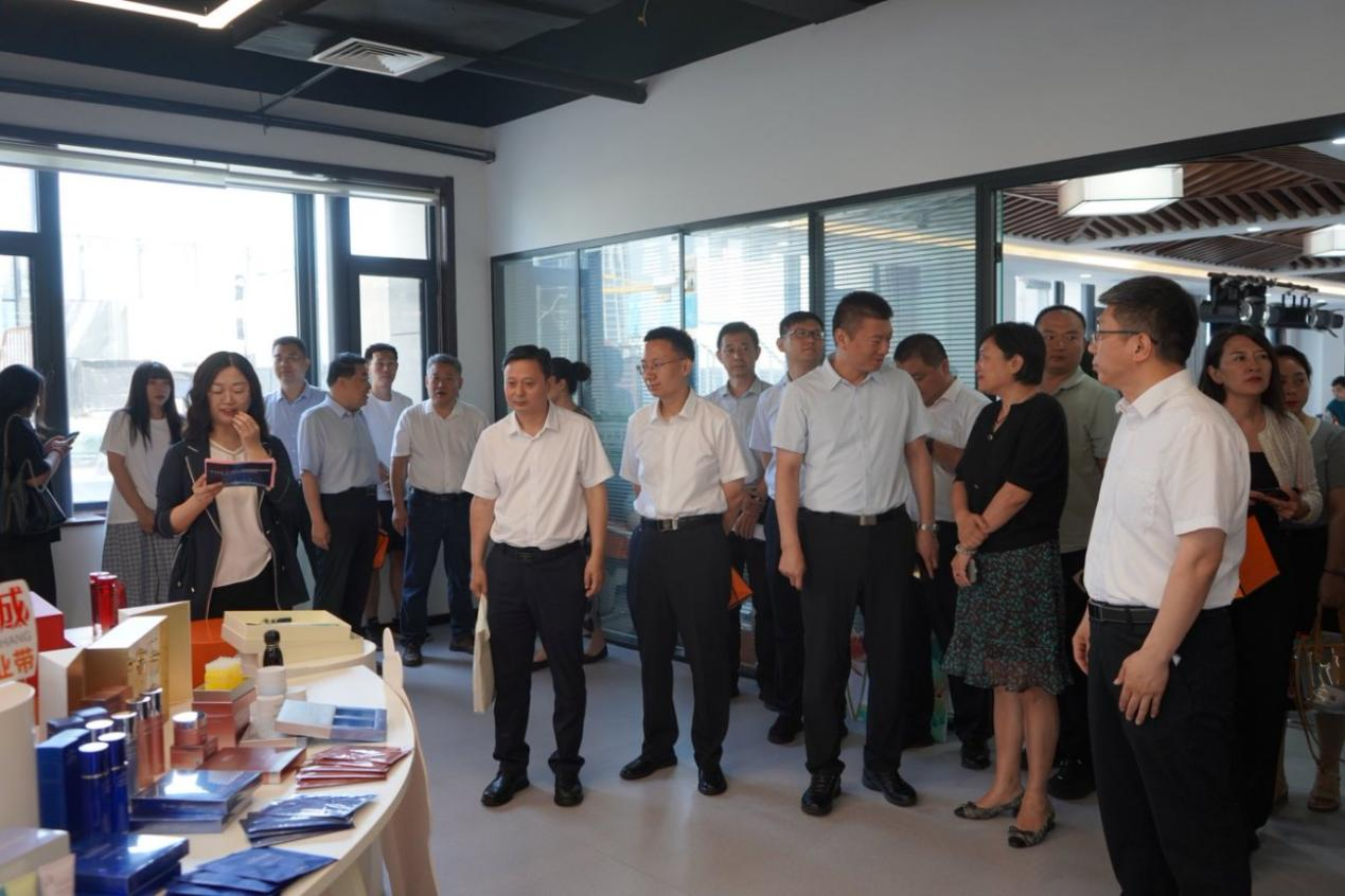揭牌仪式结束后,与会领导嘉宾参观了泉城好品直播电商基地及产品展销区,详细了解基地功能布局与运营规划;听取了“海右菁英”上海财经大学班级“双招双引”工作成果汇报,深入了解政企协同推动产业发展的显著成效。