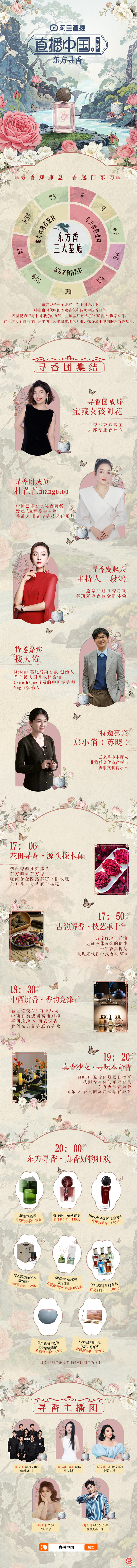 4月22日17:00至20:00,打开淘宝搜索【直播中国】直播间,共赏万亩花田芬芳,溯源千年东方香韵,敬请期待。