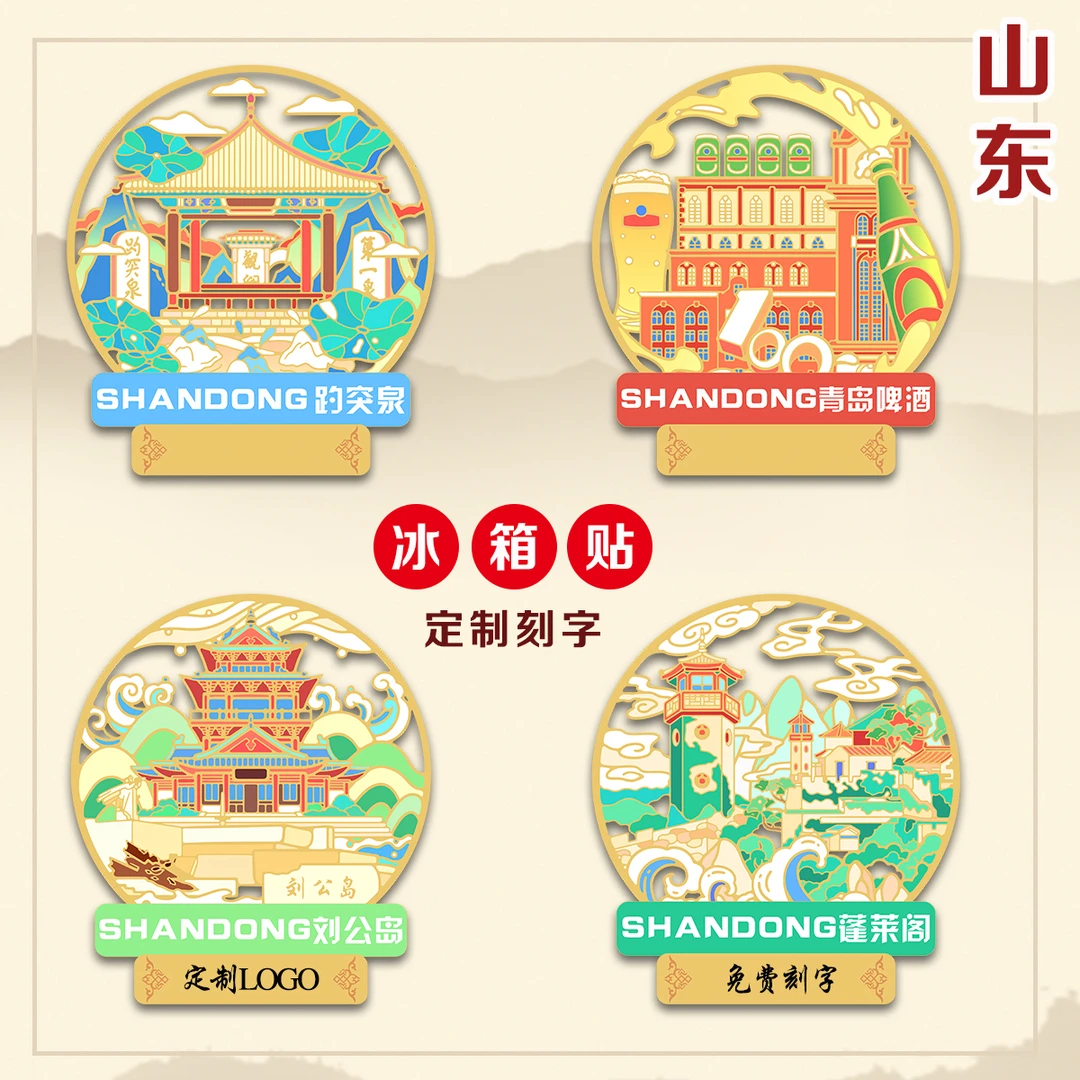 山东趵突泉金属冰箱贴青岛啤酒蓬莱阁刘公岛文创纪念景点定制刻字
