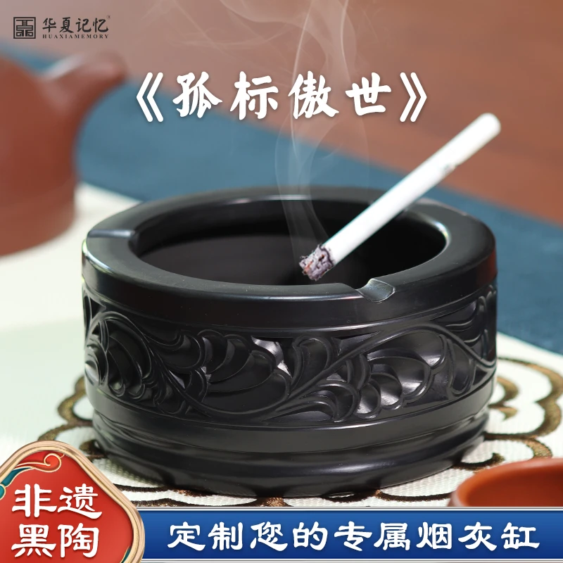 非遗龙山黑陶烟灰缸创意烟缸可定制办公家用实用摆件礼品