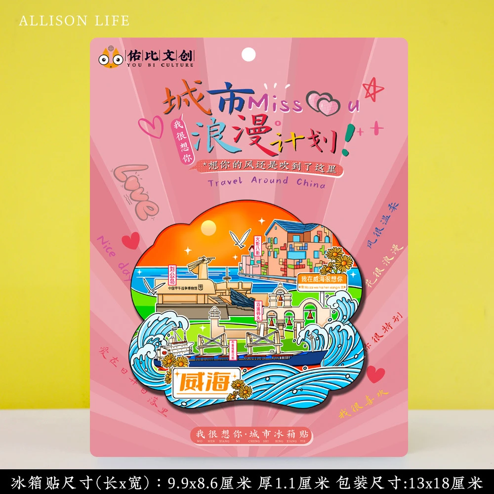 山东日照冰箱贴文创旅游纪念品伴手礼国潮中国城市景点地标磁性贴
